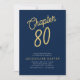 Blue 80th Birthday Gold Script 80 Invitation