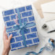 Blue 8-Bit Pixelated Look Brick Wall Pattern Wrapping Paper
