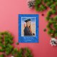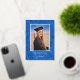 The blue abstract background has a satiny look to it. Great for your graduation announcement card. The "Graduate" text on the front is actually a graphic image but is editable with the Design Editor. The photo and all text are easily changed with the template. Selecting “Personalize this design” offers you several edit options to easily change the text (wording, plus type font, color, size, position) and to edit the design elements, if you desire. You may also want to scroll down to the section “Transfer design to a product” for a few suggestions about other items this design can be used on.