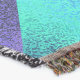A quality printed throw has its advantages. This is a much finer weave throw than its loopier cousins, and though lighter, it is worth the investment for custom room accessorizing. The back is much prettier than the typical brown, and the fringe on the long sides very vivid, the selvage nicely done. Before photographing, I washed the throw in cold water, delicate, with a thicker woven throw the same size. On tumble dry low, this throw was dry in half the time as the other. This is a very practical quality if you use throws for furniture covers or to wrap up in frequently. The sleekness of the fabric makes it a great layer for accenting or protecting without the feeling of sitting on too much stuff. Perfect for napping or when you feel a light chill coming on. The color printing is beautiful and on this fabric, matched the design and color of my Photoshop image. This is an advantage for blending room fabrics and colors. The fringe on the short sides prints the colors from the design image and therefore varies from the side fringe. I streaked a white fractal line through the plaid pattern to give the illusion of weaving. This printed as crisp as an illusory thread, and put some white in the short side fringe, showing another advantage of print vs loomed- for artistic purposes, line lines, detail, and color integrity can be planned and preserved. My loomed throws have color limitations and more of a needlepoint texture. Print throws reproduce an exact image. The throw felt a little stiff straight out of the package, but this went away in the first delicate wash. Of course I searched the wash water for ink or bleeding and there was none.