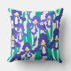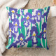 This bright and colorful throw pillow features an abstract pattern of everyone's favorite garden flower, the bearded iris. Colors used in the pattern are blue, soft green, gold, and white. Bold, modern, and full of color! Both sides of the pillow have the same design.