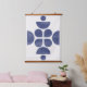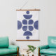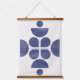 Abstract contemporary geometric design with dark blue shapes, with a mid century style.