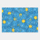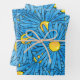 Blue Abstract Pen & Watercolor Aster Patterns Wrapping Paper Sheets
