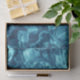 Blue water ripples create a pattern of elliptical rings in this abstract photo. The colors in the cyanotype range from light blue to navy.