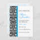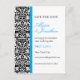 A black-and-white damask wallpaper pattern along with a blue rule serves to highlight this card. Easily personalized with your name(s), event date and information. Available in alternate colors with matching products.