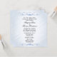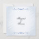 Simple scroll design in blue. A great design for your wedding invites. Put the bride and grooms first names on front giving your invitations a less formal feel. On the other side the pertinent wedding information adds a classic flair.