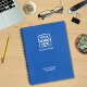 Modern, professional and personalized notebook for your employees to take notes and keep them organized. This design combines an upbeat and modern blue background with the always professional simple and easy to read white typography. Versatile design adapts to any industry or type of business. Furthermore, it transfers easily to other business supplies, office accessories and promotional products.