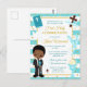 Cute African American boy blue holy first communion design with blue striped background and gold foil confetti. Graphics by Mujka and KlouiseDigiArt on Etsy.