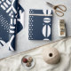 Dark blue unique, beautiful African inspired bogolan mud cloth pattern decorated gift wrap. Wrap a gift for your favorite person with this one of a kind personalized African motif style wrapping paper.