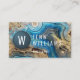 Modern business card featuring a blue / aqua, geode / agate design with gold foil accents. Personalized with your monogram. Monogrammed item.