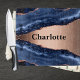 A dark blue and rose gold agate, marble stone print as background Personalize and add your name.