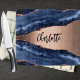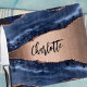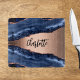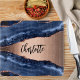 A dark blue and rose gold agate, marble stone print as background Personalize and add your name. The name is written with a modern hand lettered style script .
