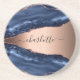 A dark blue and rose gold agate, marble stone print as background Personalize and add your name. The name is written with a modern hand lettered style script with swashes.
