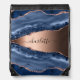 Blue agate marble rose gold name script drawstring bag