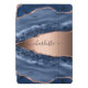 A dark blue and rose gold agate, marble stone print as background Personalize and add your name. The name is written with a modern hand lettered style script.
