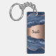 Blue agate marble rose gold name script keychain