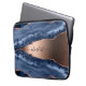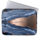 Blue agate marble rose gold name script laptop sleeve