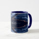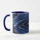 A dark blue and rose gold agate, marble stone print as background Personalize and add your name. The name is written with a modern hand lettered style script with swashes.