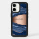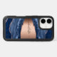A dark blue and rose gold agate, marble stone print as background Personalize and add your name. The name is written with a modern hand lettered style script.