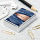 A dark blue and rose gold agate, marble stone print as background Personalize and add your name. The name is written with a modern hand lettered style script.