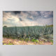Agave tequilana, commonly called blue agave (agave azul) or tequila agave, is an agave plant that is an important economic product of Jalisco, Mexico, due to its role as the base ingredient of tequila, a popular distilled beverage. The high production of sugars, mostly fructose, in the core of the plant is the main characteristic that makes it suitable for the preparation of alcoholic beverages.The tequila agave is native to Jalisco, Mexico. The plant favors altitudes of more than 1,500 metres (5,000 ft) and grows in rich and sandy soils. Blue agave plants grow into large succulents, with spiky fleshy leaves, that can reach over 2 metres (7 ft) in height. Blue agaves sprout a stalk (quiote) when about five years old that can grow an additional 5 metres (16 ft); they are topped with yellow flowers.This stalk is cut off from commercial plants so the plant will put more energy into the heart.