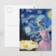 Blue Alien Pink Dress Eat Fried Eggs Faux Van Gogh Postcard