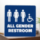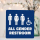 Introducing the Blue All Gender Restroom Sign with White Graphics! This versatile and stylish sign is the perfect solution for any business looking to provide a welcoming and inclusive restroom experience for all genders and abilities. Featuring the classic symbols for men, women, transgender, and handicap, this sign clearly communicates that all are welcome.