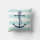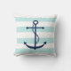 Blue Anchor on Mint Stripes Pattern Throw Pillow