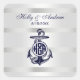 Elegant Nautical Navy Blue Anchor, Silvery White Gradient Background with White Stripe, Navy Blue Circle Monogram - Wedding Invitation Suite *********