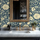 This peel-and-stick wallpaper features an elegant floral pattern with intricate details of large blooming flowers and delicate foliage in soft beige tones against a deep navy blue background. The timeless botanical design adds a touch of sophistication and charm, making it perfect for transforming living rooms, bedrooms, or accent walls. Easy to apply and remove, this self-adhesive wallpaper is ideal for renters and home decorators seeking a quick and stylish upgrade. A versatile choice for both modern and classic interiors.