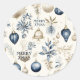 Blue and beige Christmas Ornaments Pattern Classic Round Sticker
