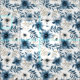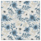 On a light blue background, there is a lovely pattern of dark blue and beige flowers with gold berries.