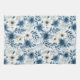 On a light blue background, there is a lovely pattern of dark blue and beige flowers with gold berries.