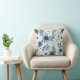 On a light blue background, there is a lovely pattern of dark blue and beige flowers with gold berries.