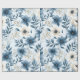On a light blue background, there is a lovely pattern of dark blue and beige flowers with gold berries.