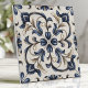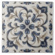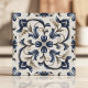 Blue and Beige Vintage Floral Scroll Ceramic Tile