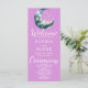 The back of the program showcases a thoughtful list of the cherished members of your wedding party, acknowledging their important roles in your celebration. Inside, the text is tastefully presented in classic black and gray, utilizing a simple block font for clarity and readability. However, the words "Welcome," "Ceremony," and "Wedding Party" are elegantly rendered in a decorative script font. This graceful script adds a touch of sophistication and charm, enhancing the overall enchanting ambiance of the design.