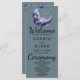 The back of the program thoughtfully lists your cherished wedding party, recognizing their roles in your special day. The text within the program is elegantly presented in classic black and gray, using a simple block font for clarity and readability. However, the words "Welcome," "Ceremony," and "Wedding Party" are intricately crafted in a decorative script font, adding a touch of grace and sophistication to the overall design.