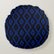 Blue and black diamond pattern round pillow