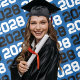 Blue and Black Repeating Class Year Tapestry Backdrop.