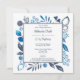 Blue and Blue Gray Leaves Flowers Border Wedding Invitation