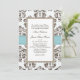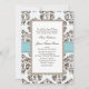 Blue and Brown Damask Wedding Invitations