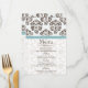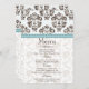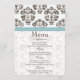 Customize this pretty blue and brown damask wedding menu card with your special day's menu. Design © Chrissy H. Studios, LLC. All Rights Reserved.