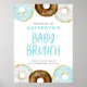 Welcome guests to your event with this customizable baby brunch welcome sign. It features watercolor blue, white and chocolate donuts with colorful sprinkles. Personalize this by adding your details. This donut baby brunch sign is available in other colors.