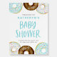 Welcome guests to your event with this customizable baby shower welcome sign. It features watercolor blue, white and chocolate donuts with colorful sprinkles. Personalize this by adding your own details. This donut baby shower sign is available in other colors.