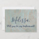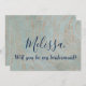 A lovely bridesmaid proposal, this invitation features a blue and copper background with a personalized "Will you be my bridesmaid?" greeting. Place your order today!
