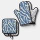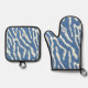 Blue and cream Modern Abstract Wavy Lines Pattern Oven Mitt & Pot Holder Set