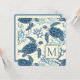 This beautiful monogrammed note card features a coastal inspired pattern of sea turtles and coral in shades of blue and cream. Personalize the monogram with your choice of initial on the front and name on the back.