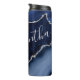 Blue and Faux Silver Glitter Marble Agate Thermal Tumbler