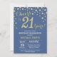 Blue and Gold 21st Birthday Diamond Invitation